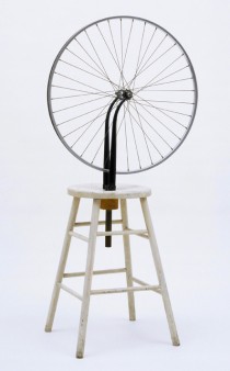 Marcel Duchamp (1887-1968) Roue de bicyclette (1913/1964) Assemblage d’une roue de bicyclette sur un tabouret – Métal, bois peint -126,5 x 31,5 x 63,5 cm – MOMA 1951 « Quand j’ai mis une roue de bicyclette sur un tabouret la fourche
